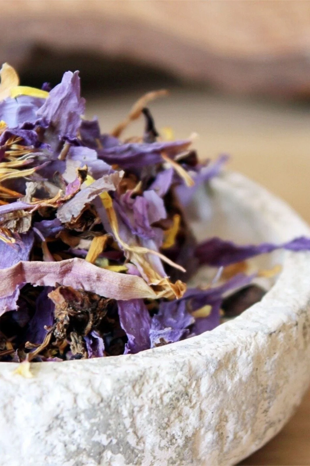 Blue Lotus (Nymphaea caerulea) is the sacred flower of the Nile, widely used in ancient Egypt for both ceremonial and medicinal purposes. It is associated with the third eye and the pineal gland, inviting dream states, heightened intuition, and altered states of consciousness.